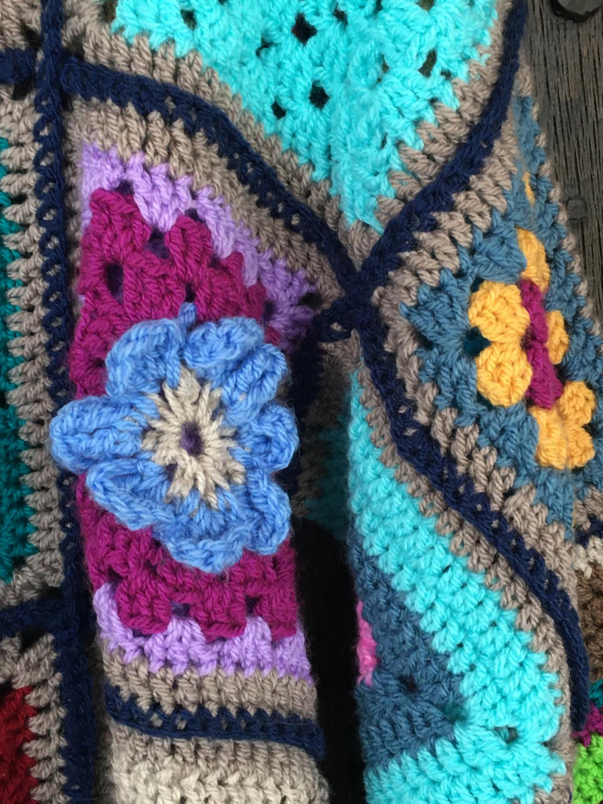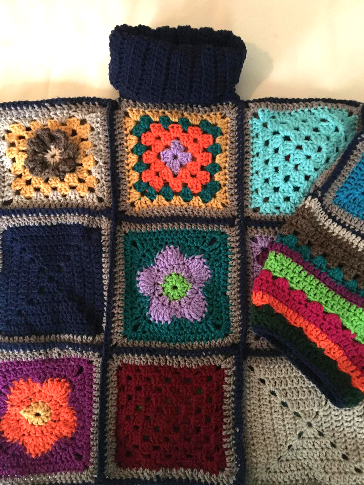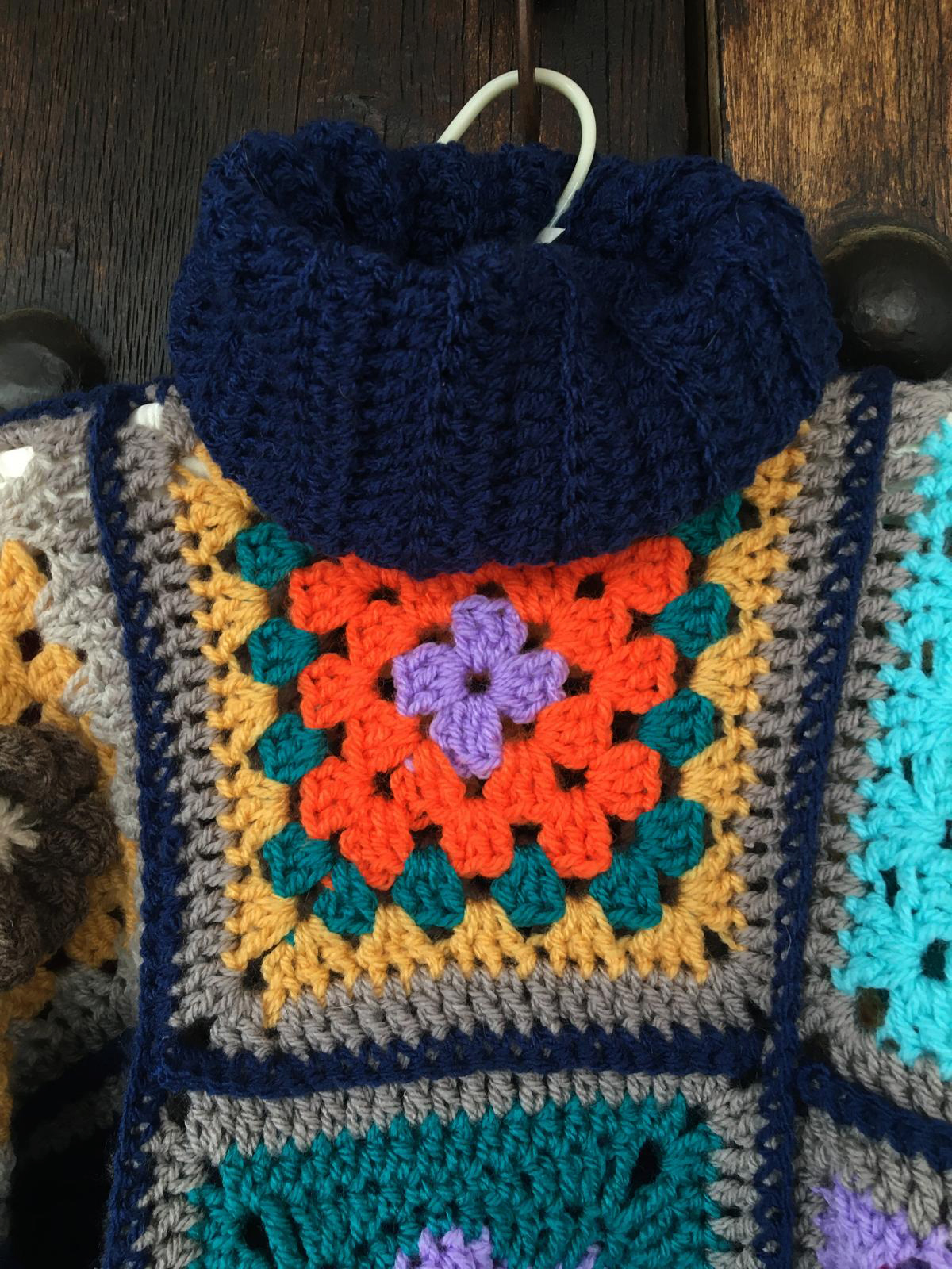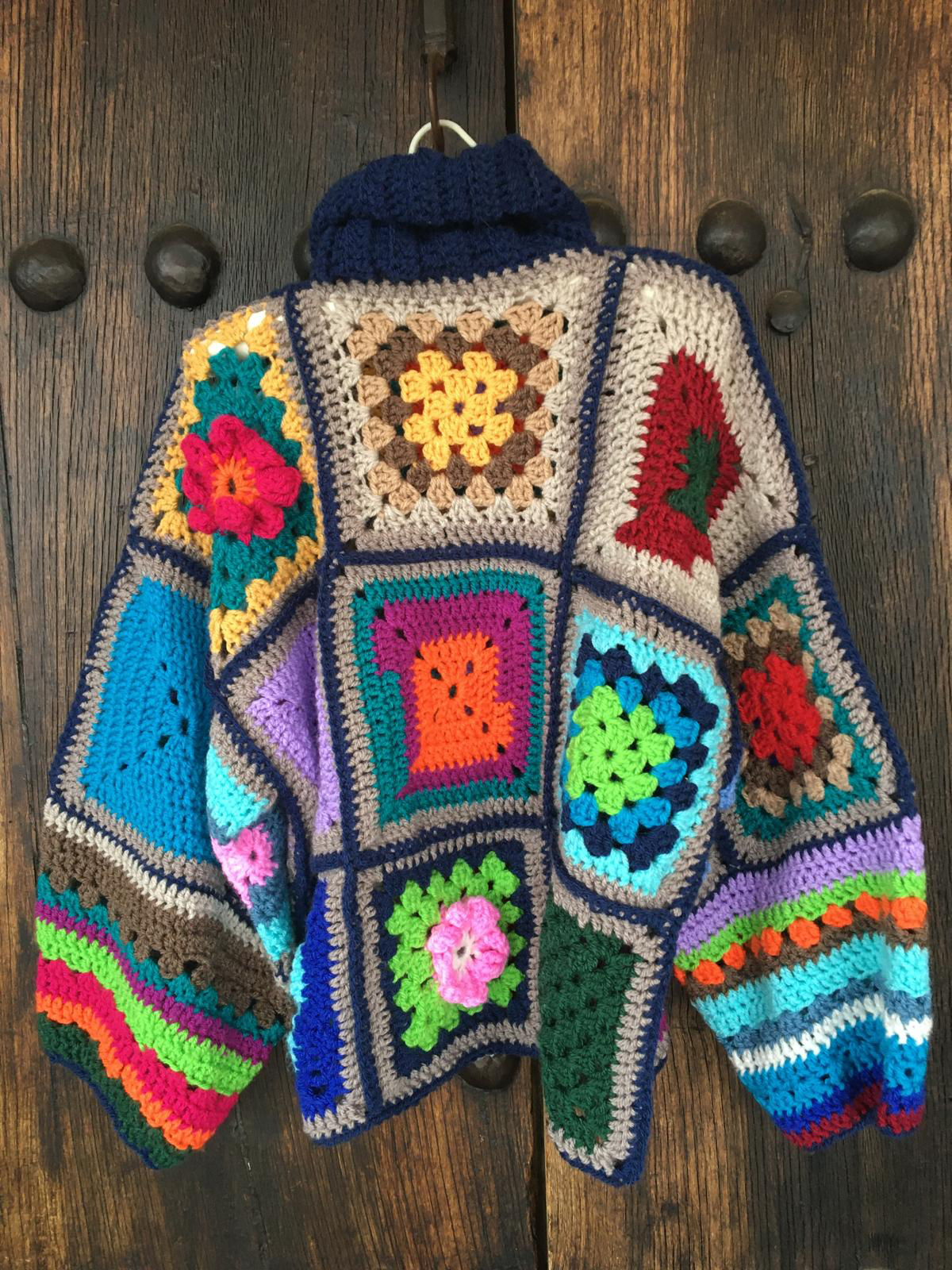 Dale un toque especial a tu armario con este precioso jersey de cuello alto tejido artesanalmente. Cada uno está confeccionado a crochet utilizando “granny squares”, lo que hace que cada pieza sea única y llena de encanto.